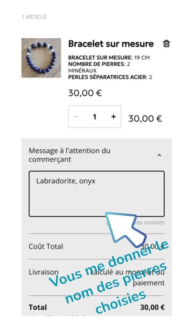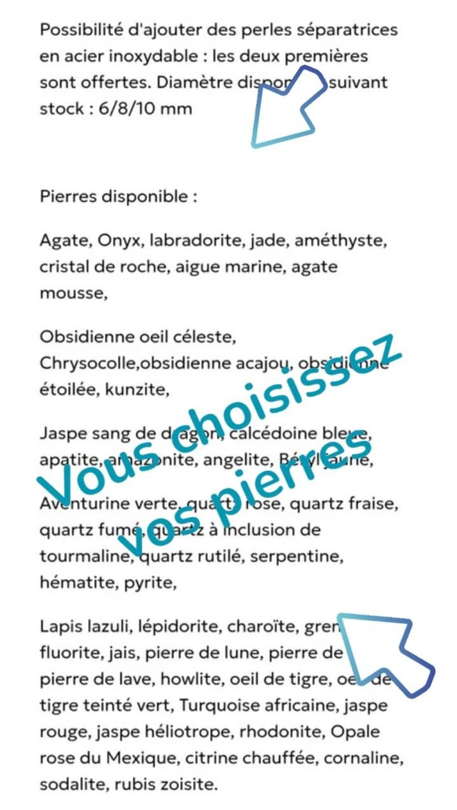 Possibilité d'ajouter des perles séparatrices en acier inoxydable : les deux premières sont offertes. Diamètre disponible suivant stock : 6/8/10 mm