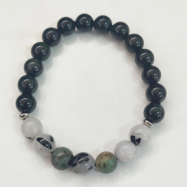 Obsidienne oeil céleste, Chrysocolle,obsidienne acajou, obsidienne étoilée, kunzite,