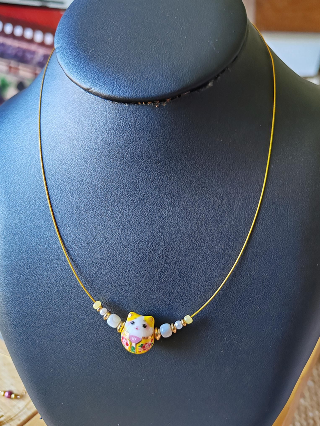 Collier chat porcelaine jaune