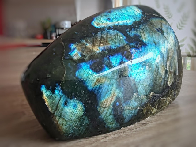 Sublime pièce de labradorite polie forme libre.